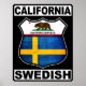 Das kalifornische schwedische Design im Stil eines coolen amerikanischen Wegweises. Der Text California Schwedisch ist oben und unten, mit der Flagge des Staat von Kalifornien und der Flagge von Schweden im Zeichen der Route. Ideal für Kalifornier schwedischer Abstammung und für Ex-Pats in der Republik Kalifornien!