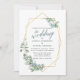 Modernes Kalligraphieskript, elegante Eukalyptus-Aquarellen, Goldene geometrische Rahmen Hochzeitseinladungskarte