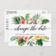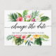 Moderne Kalligrafie Script Watercolor Tropical Floral Change The Date Wedding Postponed New Date Announcement Postcard Features tropische Blume und Grünflächen