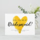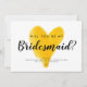 "Werden Sie meine Brautjungfrau sein?" Vorschlagskarte mit gelbem Wasserfarbendesign im Herzen?