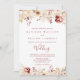 Diese kalligraphische, blumengeschmückte Vorder- und Hinterzeitseinladung ist perfekt für eine rustikale Hochzeit. Die Einrichtung ist in Weiß, Bordeaux, rosa Rosen und Herbstlauben gehalten. Rett Papier, indem man mehr Details auf der Rückseite der Einladung anstatt auf einer separaten Gehäusekarte angibt.