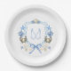 Coastal Grandmillenial Crab Kalligraphie Monogram Party Paper Teller. Schöne Farben in Blau, Weiß und Creme. Gehen Sie in EDIT MODE, um Ihre eigene Kalligraphie-Monogramm-Initial auszuschalten. Entblöße den, den du brauchst. Personalisieren Sie dieses Design, wählen Sie einfach die Schaltfläche "Personalisieren" oben!