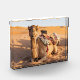 Nah auf Kamel sitzend auf dem Boden und schauend gerade - Oman Wüste
