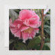 Eine hellrosa Kamelie-Blume gegen Blattbildung