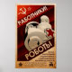 Ein Retro-futuristisches sowjetisches Propagandaposter mit riesigen kommunistischen Robotern.