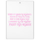 In Rosa lautet der Text: "Warum hört die Welt den Frauen nicht zu, wenn es um Frauenrechte und Gesundheitsfürsorge geht? Kampf für Frauen". Die Os im Text sind eigentlich das Zeichen für Weibliche.
