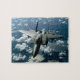 Großes Foto eines Kampfjets am Himmel. Große Einnahme mit schönen Wolken und Inseln sichtbar auf dem Boden.
