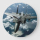 Großes Foto eines Kampfjets am Himmel. Große Einnahme mit schönen Wolken und Inseln sichtbar auf dem Boden.