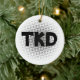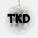 Personalisieren Sie das Runde Ornament der Kampfkünste TKD Dots mit dem Namen Ihres Kampfkünstlers und Ihres Datums. Dieses typische Taekwondo-Ornament aus Keepake weist die Buchstaben TKD fett mit einem Hintergrund von grauen Punkten auf.