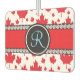 Dekonstruierte Kanada-Fahne mit rot kanadischen Ahornblättern gelegentlich um einen atemberaubenden schwarz-roten Monogramm-Button mit Diamanten gegossen. Große Kontrastfarben und aufwändiges Design. Alle Bilder und Kunstwerke ©allmonogram Store.