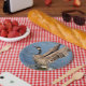 Kanada-Gans, die das Wasser entfernt Pappteller