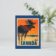 Vintage touristische und Reisewerbung für Kanada. Eine Outdoor-Szene mit Elche. Ich fügte durchdacht entworfene, farbenfrohe grafische Ränder hinzu.