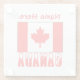 Personalisierter Untersetzer mit schneebedeckten Buchstaben, die CANADA lesen, befindet sich unter der kanadischen Flagge. Fügen Sie Ihren Namen, um das Aussehen zu personalisieren oder ein Geschenk zu erstellen. Die kanadische Flagge hat ein weißes Zentrum mit einem roten Ahornblatt im Inneren. Eine rechts und links vom weißen Bereich sind zwei rote. Ideal für Ihre Kanadatag-Feier. Schönes Geschenk für die Hauswärmung. Verwendung in Wiedersehen, Vereinen und Reisegruppen.