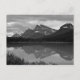 Ein kanadischer See spiegelt die Berge und die Landschaft in Schwarz und Weiß wider.
