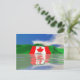 Postcard mit meinem original digitalen Kunstwerk einer Seelandszene mit grünen Hügeln und einer riesigen kanadischen Fahne.