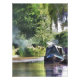 Die im Vereinigten Königreich als Schmalboote bekannten Kanalboote wurden ursprünglich zur Beförderung von Gütern im ganzen Land eingesetzt. Sie werden heute hauptsächlich zur Freizeitgestaltung genutzt und ziehen Menschen aus aller Welt an, um unsere ländliche Umgebung zu genießen. Diese Boote sehen sehr hübsch mit ihren hellen Kabinen aus, die traditionell blau, rot oder grün sind. Blume und Schlossdesigns schmücken auch die traditionelleren Boote. Digitale Wasserfarbe.