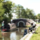 Ein Kunstdesign eines Schmalschiffes, das sich einer Schleuse nähert, und eines Mannes, der angeln will. Die im Vereinigten Königreich als Schmalboote bekannten Kanalboote wurden ursprünglich zur Beförderung von Gütern im ganzen Land eingesetzt. Sie werden heute hauptsächlich zur Freizeitgestaltung genutzt und ziehen Menschen aus aller Welt an, um unsere ländliche Umgebung zu genießen. Diese Boote sehen sehr hübsch mit ihren hellen Kabinen aus, die traditionell blau, rot oder grün sind. Blume und Schlossdesigns schmücken auch die traditionelleren Boote.