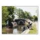 Ein Kunstdesign eines Schmalschiffes, das sich einer Schleuse nähert, und eines Mannes, der angeln will. Die im Vereinigten Königreich als Schmalboote bekannten Kanalboote wurden ursprünglich zur Beförderung von Gütern im ganzen Land eingesetzt. Sie werden heute hauptsächlich zur Freizeitgestaltung genutzt und ziehen Menschen aus aller Welt an, um unsere ländliche Umgebung zu genießen. Diese Boote sehen sehr hübsch mit ihren hellen Kabinen aus, die traditionell blau, rot oder grün sind. Blume und Schlossdesigns schmücken auch die traditionelleren Boote.
