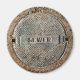 Ein Metall, wahrscheinlich Stahl, Abwassermanlochdeckel in einer Straße.
