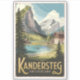 Kandersteg retro Vektor Reise Design. Kandersteg ist ein Bergdorf im Berner Oberland in der Schweiz. Trails, wie die herausfordernde Allmenalp, und eine Seilbahn führen nach Osten zum Oeschinen See.