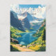 Kandersteg retro Vektor Reise Design. Kandersteg ist ein Bergdorf im Berner Oberland in der Schweiz. Trails, wie die herausfordernde Allmenalp, und eine Seilbahn führen nach Osten zum Oeschinen See.