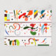 Kandinksy-Nachfolge Postkarte. Öl auf Leinwand aus dem Jahr 1935. Der russische Maler Wassily Kandinsky war berühmt für seine wilden Formen und Farben. Eine Folge abstrakter Designs mit mehreren Farben, Mustern und Abmessungen auf weißem Hintergrund. Dieses Gemälde ist ein großartiges Geschenk für Kandinsky-Fans, Abstrakte Malerei und moderne Kunst.