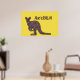 Das Poster zeigt die Känguru-Silhouette im aboriginen Mosaik auf gelbem Hintergrund mit "Australia" im Grunge-Stil
