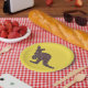 australische Känguru-Silhouette im Stammes-/Ethnemmosaikmuster auf gelbem Hintergrund