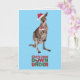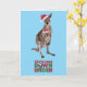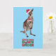 Eine Mama und ein Baby Känguru tragen Weihnachtsmannmützen.