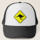 Weißer Hintergrund mit gelbem Vorsichtzeichen mit Känguru in der Mitte