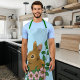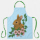 Ein niedliches braunes Hasen sitzt zwischen rosa Blume in hellblauer Umgebung