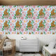 Ein niedliches braunes Hasen sitzt inmitten von rosa Blume in hellblauer Umgebung