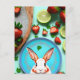 Kaninchen, Erdbeere, Mandala, Postkreuzung Postkarte, Postcard, Postkreuz, Postkreuz, bezaubernde Postkarte, Tierpostkarte, generativekonzenz, KI Generation, Kunst, modern, schön, Kaninchen Postkarte, Obst