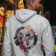 Die Ronin Samurai Hoodie, ein stilvolles und komfortables Stück, das ein Design eines einsamen Samurai-Kriegers, bekannt als Ronin, enthält. Im Mittelpunkt des Designs steht das Bild des Ronins, das in fett- und farbenlackierten Details dargestellt ist, die die Stärke und Gnade dieser ikonischen Figur aus der japanischen Geschichte hervorheben. Aber was dieses Hoodie auszeichnet, ist seine Betonung von Kanji-Zeichen. Die alten Symbole, die für japanische Schrift und Kultur von zentraler Bedeutung sind, werden im Design hervorgehoben dargestellt und fügen dem Stück Tiefe und Bedeutung hinzu. Die Kanji-Figuren, kombiniert mit dem Bild des Ronins, schaffen eine kraftvolle Hommage an die zeitlose und faszinierende Geschichte des Samurai. Es ist sicher, sich zu drehen und überall Gespräche inspirieren.