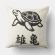 Kühne schwarzweiße Schildkröte zeichne mit japanischem Kanji 雄 亀 (Kame, männliche Schildkröte). Der Schablone-/Tintenstil auf einem hellen Hintergrund ist ideal für Drucke, Aufkleber, T-Shirts, Logos und Dekoration.