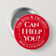 Ein Abzeichen für Mitarbeiter, Sprichwort "Kann ich dir helfen?" Ändern Sie den Wortlaut in Ihre Details. Abzeichen des Personals. Offizielles Abzeichen in Rot und Weiß.