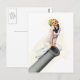 Vintages Button-Up-Bild aus einem klassischen Zeitalter. Ein lustiges, sassy Bild einer Retro-Pinup-Pose. Weiblicher Segler, der am Ende einer Kanone reitet.