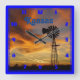 Ein Foto eines Golden Sunset mit Wolken und einer Windmill Silhouette nördlich von Hutchinson Kansas USA im Land auf einem SQUARE CLOCK.