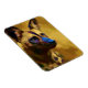 Ein digitales Bild, das Hyperrealismus mit kühner, zeitgenössischer Abstraktion verbindet. Dieses faszinierende Porträt eines afrikanischen Wildhundes zeigt einen harmonischen Zusammenprall von lebhaften Farben, tiefer Blues, goldenen Ochsen und elektrischen Grüntönen, die jedem Fellstrand und jedem Schatten Leben einhauchen. Die strukturierten, beinahe kubistischen Pinselstriche verleihen Tiefe und Bewegung und verwandeln ein einfaches Profil in eine Darstellung von roher Schönheit und emotionaler Intensität.