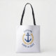 Eine stilvolle Tasche mit Captain oder einem anderen Titel, Ihrem personalisierten Namen, Bootsnamen oder einem anderen Wunschtext. Ein speziell entworfener nautischer Bootsanker mit goldfarbenen Lorbeer-Blätter und Stern auf Weiß. Passen Sie die Basisfarbe einfach an Ihre aktuelle Dekoration oder Ihr aktuelles Thema an. Wiederverwendbar und ideal für Ferien, Shopping und Reisen. Das perfekte personalisierte Geschenk für jeden Anlass.