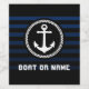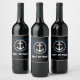 Set von 6 personalisierten Wine Flaschenschildern mit einem eigenen nautischen Anker mit Ihrem Kapitän oder einem anderen Rang, Ihrem Namen und Bootnamen oder Ihrem Wunschtext in Weiß mit Marineblau und Black Stripes.