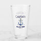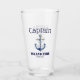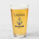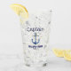 authentisches wasserbierglaskapitän und schiffsname glasfarbankerblau und goldmoderne typografiezuhausetraditionelle typografieart der nautischen schablonekapitän