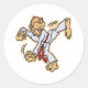 Dieser bezaubernde Affe trägt seinen Karate-Anzug und gibt einen hohen Tritt.