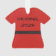 Rote Karate Uniform mit schwarzem Gürtel. Personalisieren Sie den Text wie gewünscht.