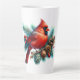 Kardinal auf der Kiefernabzweigung mit den Winterb Milchtasse
