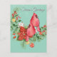 Kardinal Birds auf Weihnachtskranz Postkarte