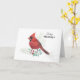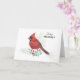 Ein rotes Kardinal Aquarellbild mit Happy Holidays auf Grußkarte. Design von Jenn Steffen, Jenns Emporium.