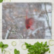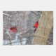 Ein Kardinal im Flug, während der andere sitzt und darüber nachdenkt, was zu tun ist.