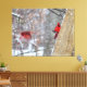 Ein Kardinal im Flug, während der andere sitzt und darüber nachdenkt, was zu tun ist.