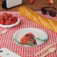 Kardinal in schneebedecktem Tannenbaum Pappteller